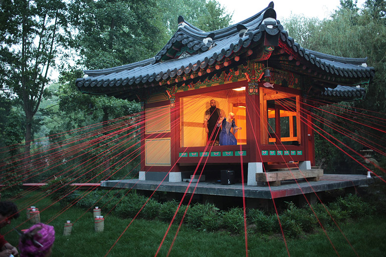 kaleidoscopic 5 seasons gardens - book trees - walls to walk through - flower bed to sleep in - a giant egg house for…chickens - a river that flows backwards - galaxies and giants living in trees - keys for nowhere - black nest star observatory - fairy tale bedrooms - caravan paradise - red walkway on milky way - Korean temple for sunset fishing ceremonies - capsized ship canteen - floating singing moons - horses with pink wings,…