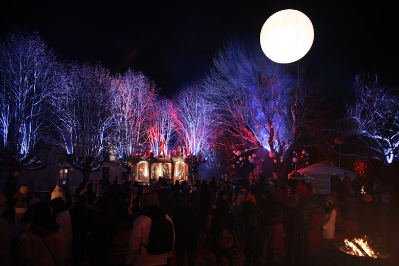 The White Carnival, a festival of multiple international street theatre companies selected according to the size of the event in a location re-designed in a white fantasy land.